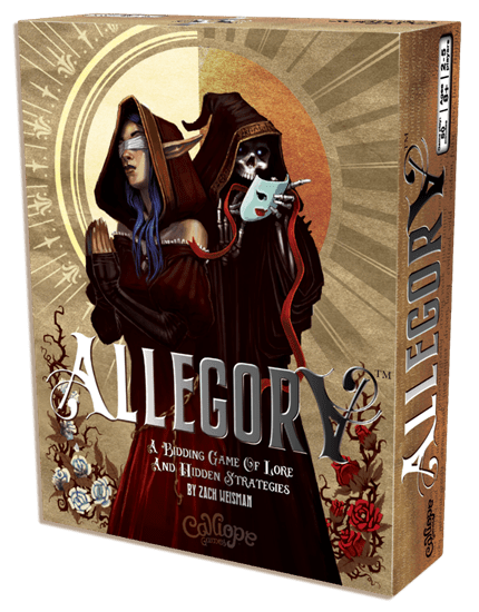 In Allegoryâ„¢, 2-6 players compete to earn the most points by bidding Lore chips, collecting cards into three Tales, and creating sets of Themes. Choosing which Theme cards to take is important, not only because players each have a hidden goal to accomplish, but also because in the end, only the Tale with the lowest value is scored! Winning a bid actually loses you chips; when you win you must skillfully distribute the Lore chips used across the remaining cards the Inspiration Pool, to be taken by other players later!