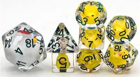 Dungeon’s Gate Resin Chicken Dice Set in lidded container